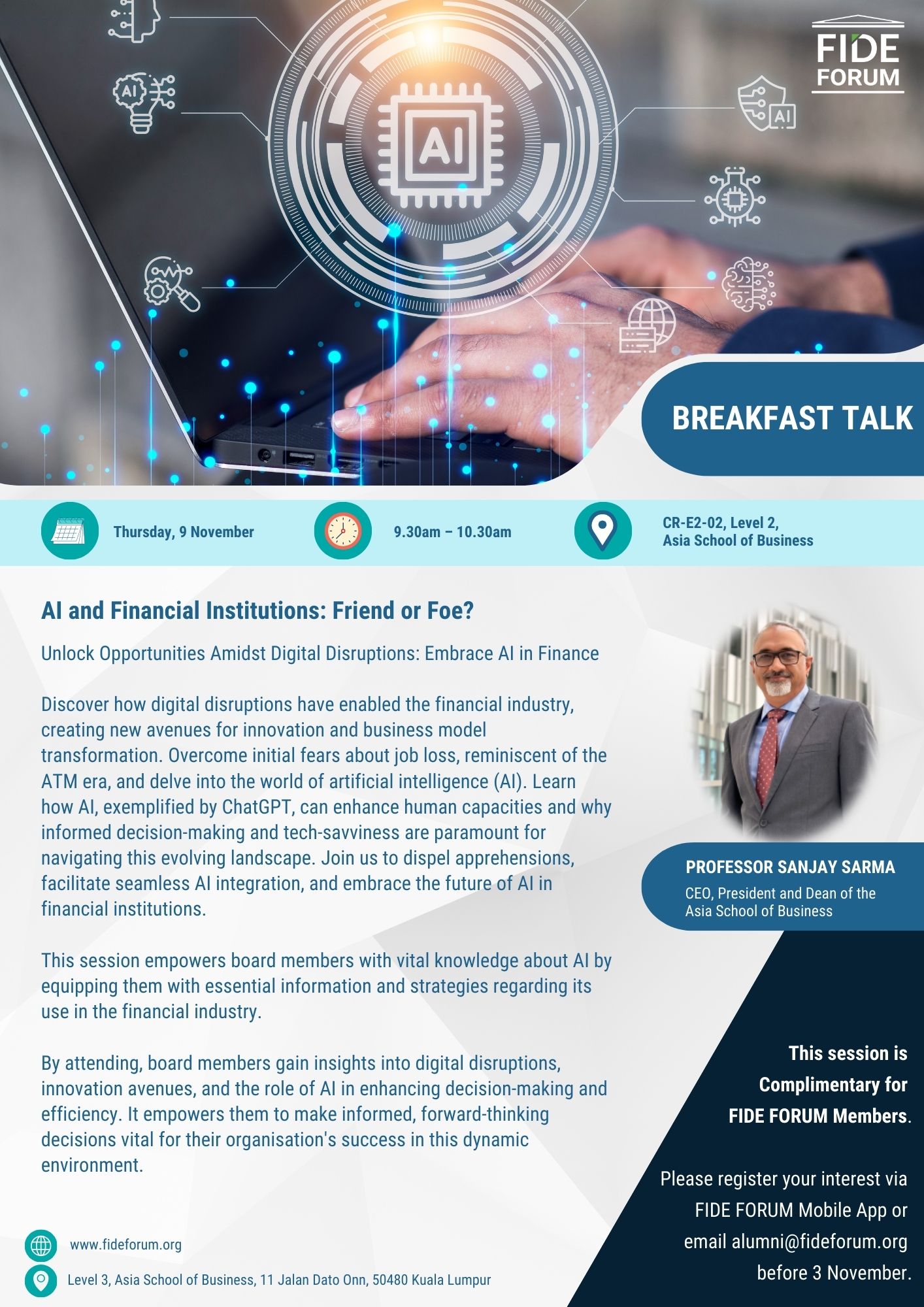 These events are exclusive and complimentary for FIDE FORUM Members. Talk to us at