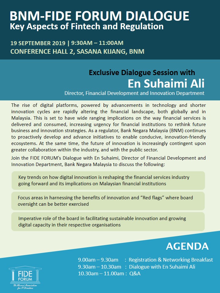 BNM-FIDE FORUM Dialogue: Key Aspects of Fintech and Regulation