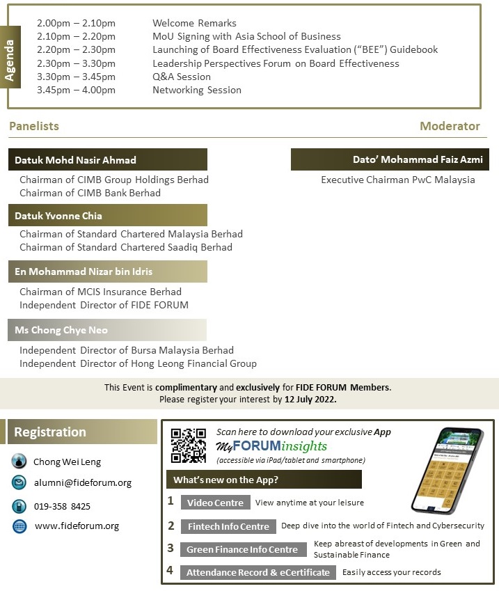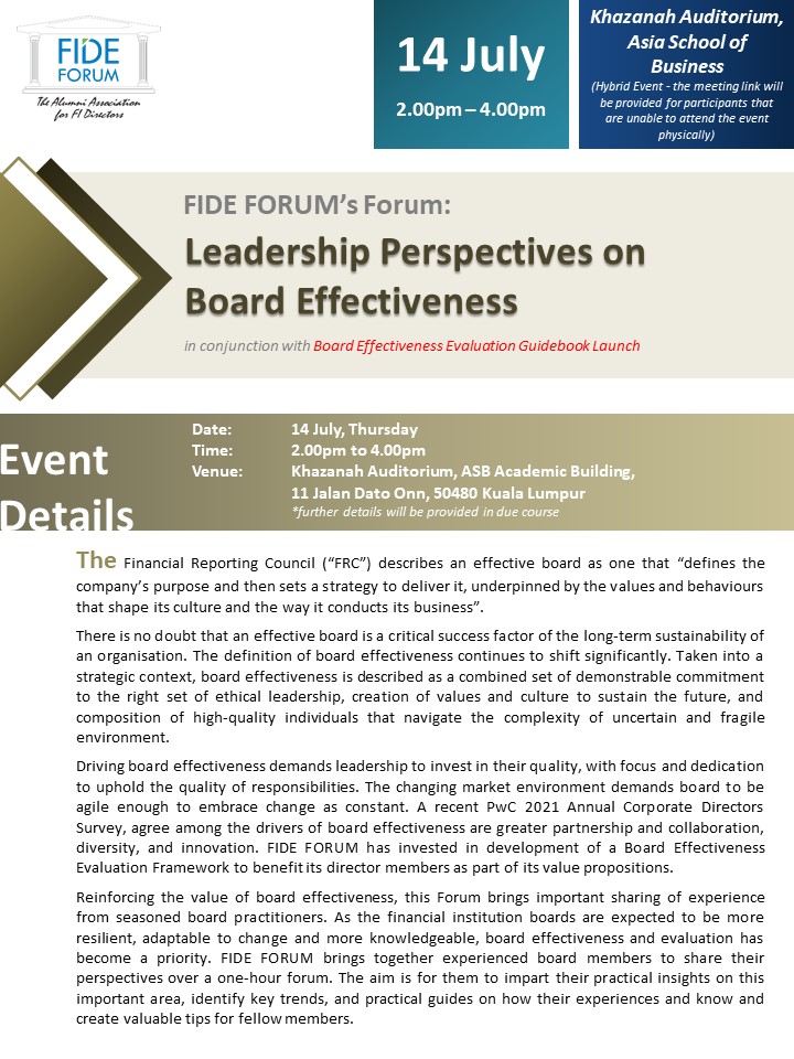 FIDE FORUM Leadership Perspectives Forum on Board Effectiveness in conjunction with BEE Launch