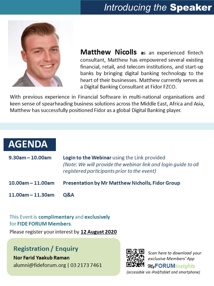 These events are exclusive and complimentary for FIDE FORUM Members. Talk to us at